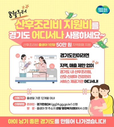 산후조리비 지원비, 8월부터는 경기도 어디서나 사용하세요