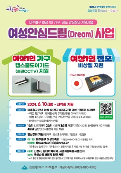 미추홀구, '여성안심드림사업' 추진으로 안심 장비 지원해