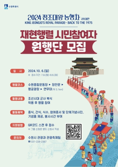 수원시, '2024 정조대왕 능행차 재현행렬' 시민참여자 '원행단' 모집