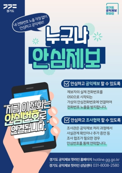 경기도, 전국 최초 공익제보 안심전화번호 서비스 '누구나안심제보' 도입