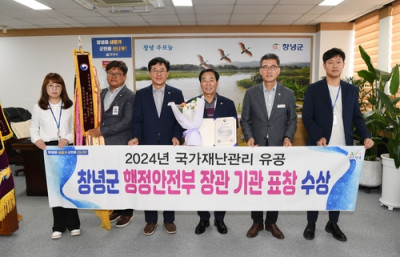 창녕군, '국가재난관리 유공'으로 행정안전부 장관 기관 표창 수상