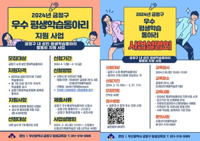 부산 금정구, 2024년 우수 평생학습동아리 지원사업 공모