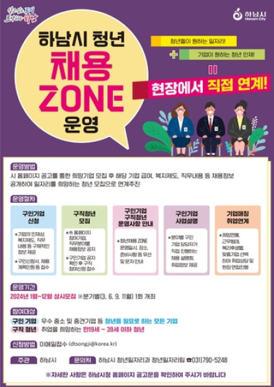 하남시, 29일 소규모 채용박람회 '청년 채용 ZONE' 운영
