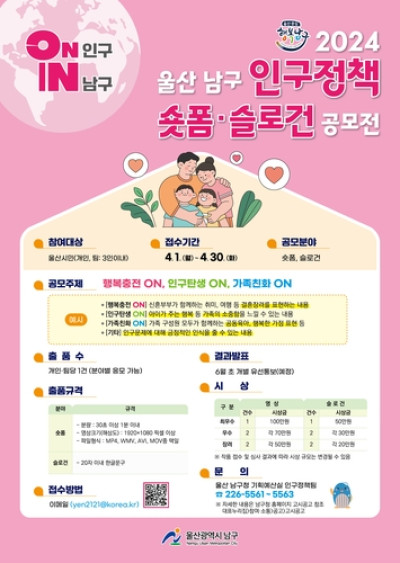 울산 남구, 결혼과 저출산 인식개선…영상·표어 공모전 개최
