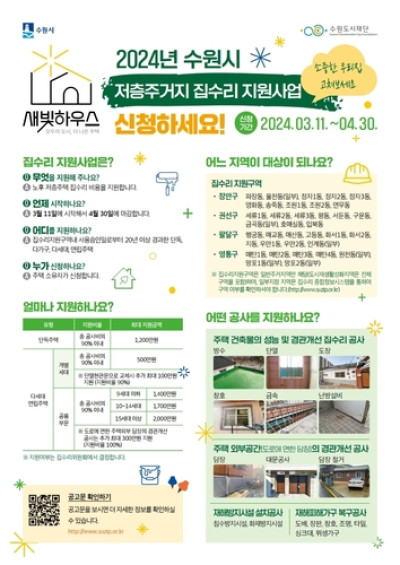 수원형 저층주거지 집수리 지원사업 '새빛하우스' 신청하세요