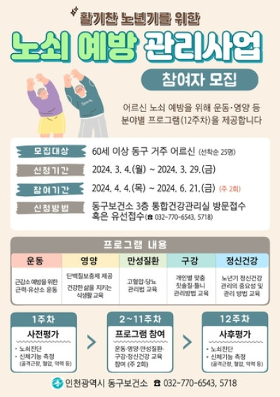 인천 동구, 어르신 노쇠예방 관리사업 참여자 모집