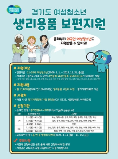 경기도, 여성청소년 생리용품 보편지원…외국인도 포함