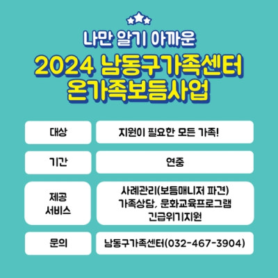 남동구 가족센터, 도움 필요한 가족에 통합서비스 지원