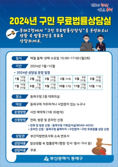 부산 동래구, '2024년 구민 무료법률 상담실' 운영