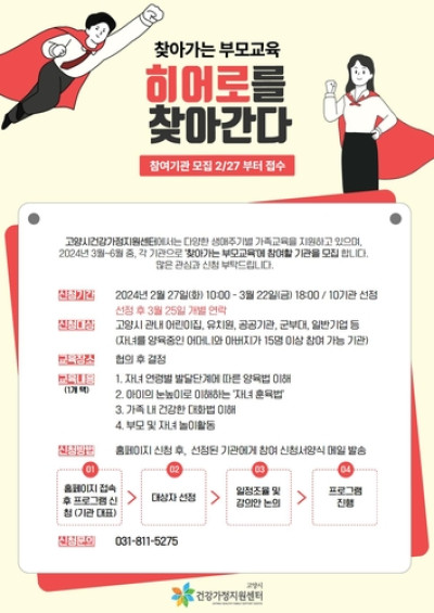 고양시 건강가정지원센터, '찾아가는 부모교육' 참여기관 모집