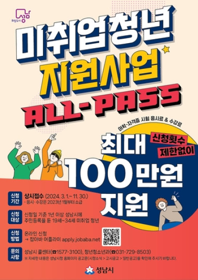 성남시, 미취업 청년 어학·자격시험 응시료 지원 '최대 100만 원'