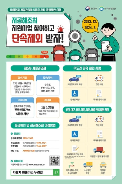 시흥시, 고농도 미세먼지 저감 위해 배출가스 5등급 차량 운행 제한