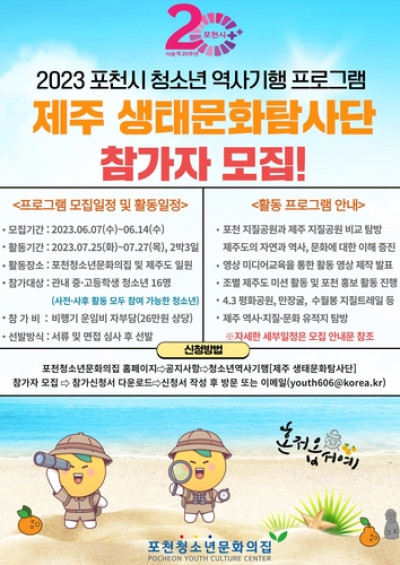 포천시, 청소년 제주 생태문화탐사단 참가자 모집