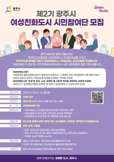 광주시, 제2기 여성친화도시 시민참여단 30명 모집