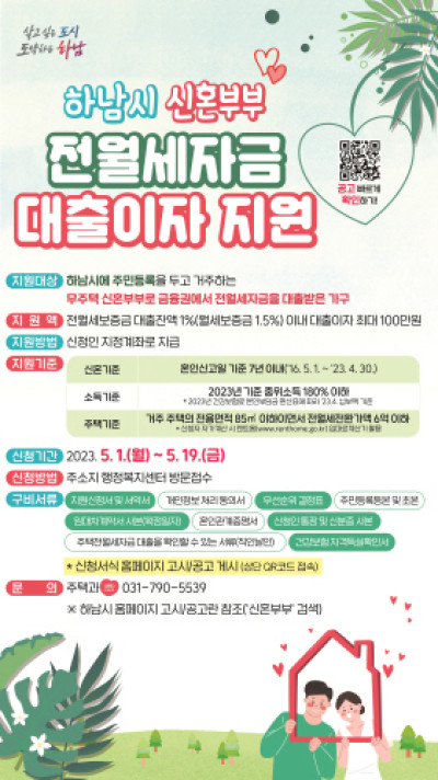하남시, 신혼부부 전월세자금 대출이자 최대 100만원 지원
