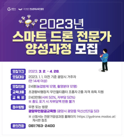 광양시, 드론 전문가 양성 '교육비 50%' 지원