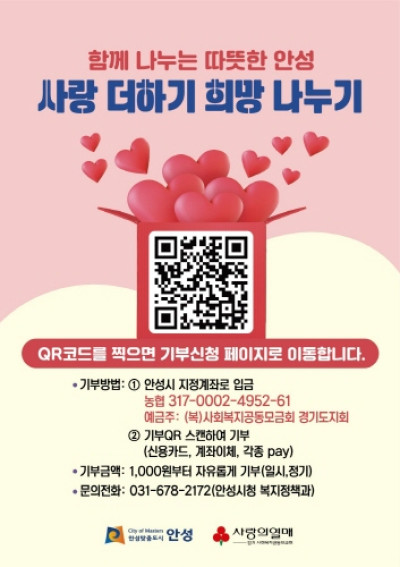 "사랑 더하기 희망 나누기"…안성시, 기부문화활성화 캠페인 실시