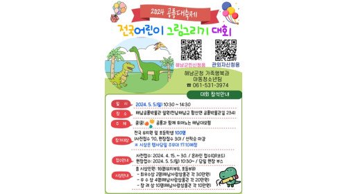 해남군 "5월 5일 어린이날 공룡축제도 즐기고, 재능도 뽐내봐요"