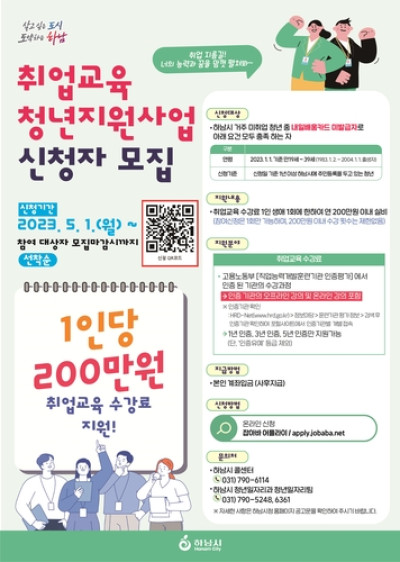 하남시, 미취업 청년 1인당 200만 원 취업교육비 지원
