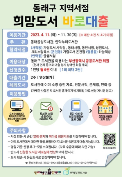 부산 동래구 구립도서관, '지역 서점 희망 도서 바로 대출' 운영