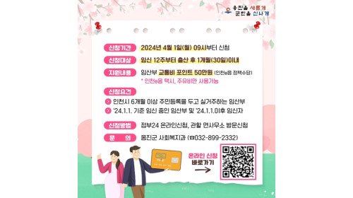 옹진군, 4월 1일부터 임산부 교통비 지원 신청 받아