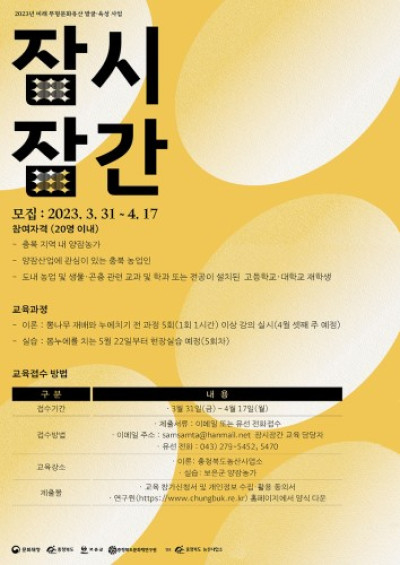 보은군, 미래세대 위한 전통 양잠 기술·지식 전승 교육생 모집