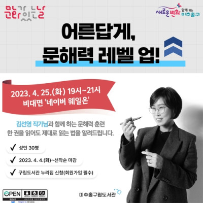 미추홀구립도서관, 김선영 작가와 함께하는 성인대상 문해력 특강 운영