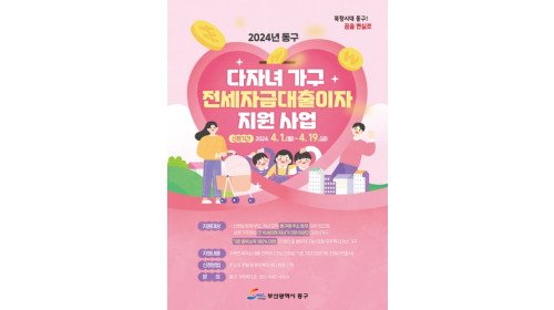 부산 동구, 무주택 다자녀가구 전세자금 대출이자 지원