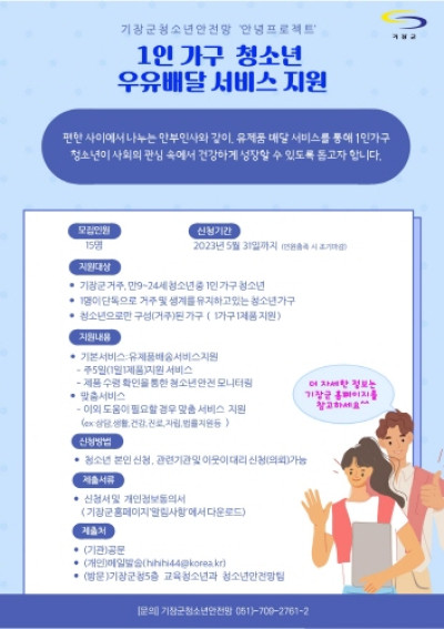 부산 기장군, 1인 가구 청소년 우유배달 서비스 지원
