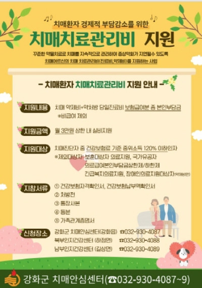 인천 강화군, 치매치료관리비 연 최대 36만원까지 지원