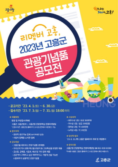 고흥군, '리멤버 고흥, 2023 고흥군 관광기념품 공모전' 개최
