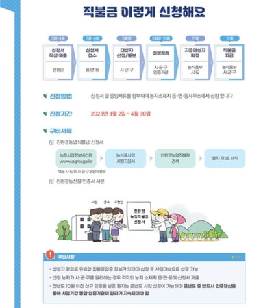 전라남도 "친환경직불금, 유기·무농약 지속 직불금 신청하세요"