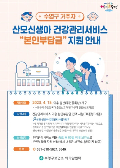 부산 수영구, 산모·신생아 건강관리 서비스 본인부담금 전액 지원