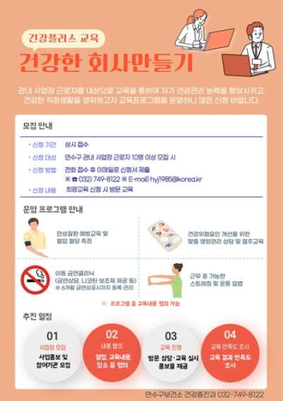 연수구, 직장인 대상 '건강한 회사 만들기' 사업 확대 추진