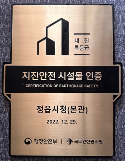 정읍시, 공공청사 22개소 '지진 안전 시설물 인증' 획득