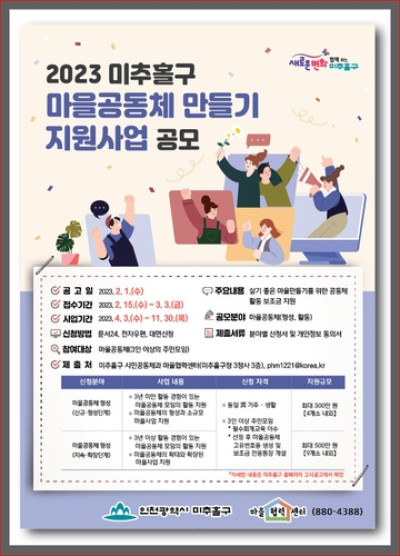 미추홀구, 2023년 마을공동체 만들기 지원사업 공모 시작