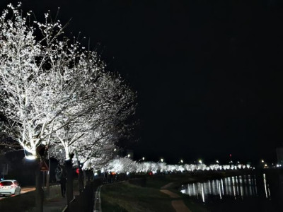 군은 단순한 조명 설치를 넘어 하천 주변 자연환경과 조화를 이루는 경관 연출에 중점을 두고 사업을 진행했다. 산책로 일대에는 연분홍과 화이트 계열 조명을 활용해 벚나무 경관을 정비했으며, 이를 통해 야간에도 밝고 안정적인 보행 여건을 마련했다.
