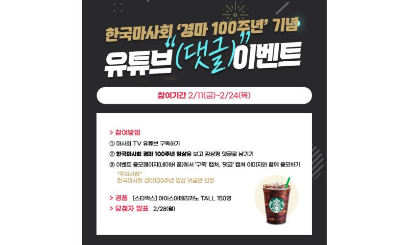 한국마사회(회장 정기환) 공식 유튜브 채널인 '마사회TV'에서 한국경마 100주년 기념 영상을 공개하고 이와 연계한 온라인 댓글 이벤트를 시행한다.한국경마는 1922년 …