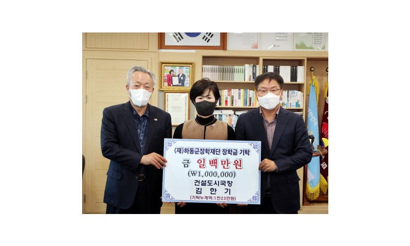 하동군 김한기 국장, 뜻깊은 장학기금 100만원 쾌척