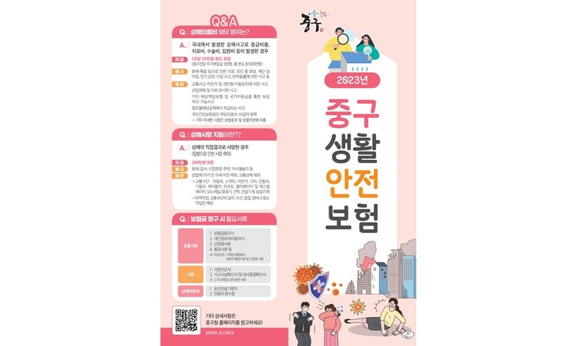 서울 중구(구청장 김길성)는 구민이 예상치 못한 재난과 안전사고로 피해를 입었을 때 소정의 보험금을 받을 수 있도록 2021년부터 생활안전보험 제도를 도입해 지원하고 있…