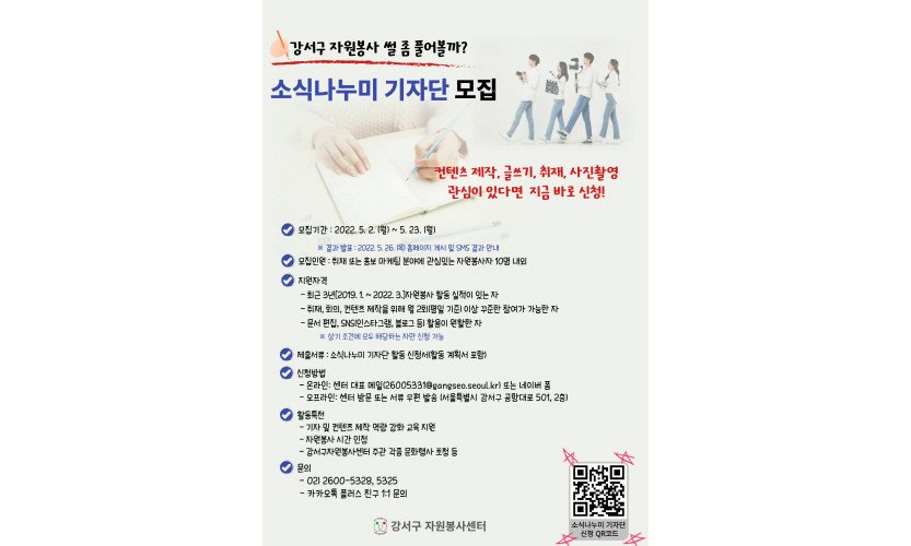 서울 강서구, 자원봉사 소식 전하는 '소식나누미 기자단' 모집