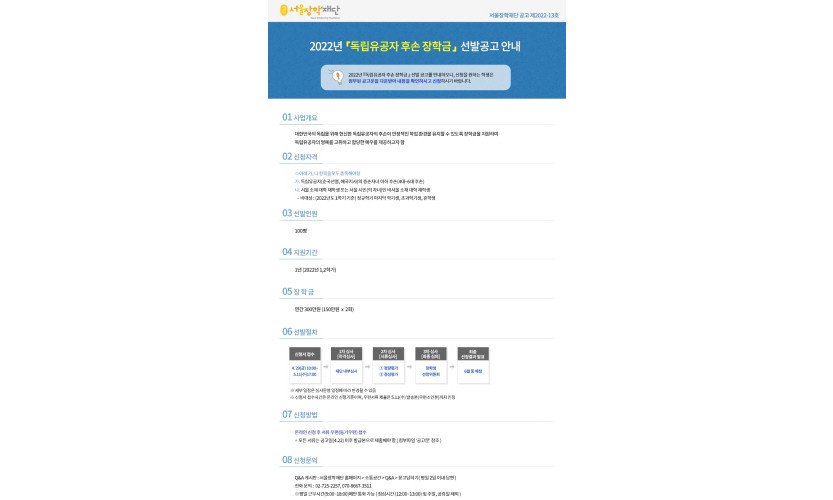 서울장학재단, '독립유공자 증손 자녀 이하 후손'에 장학금 지원