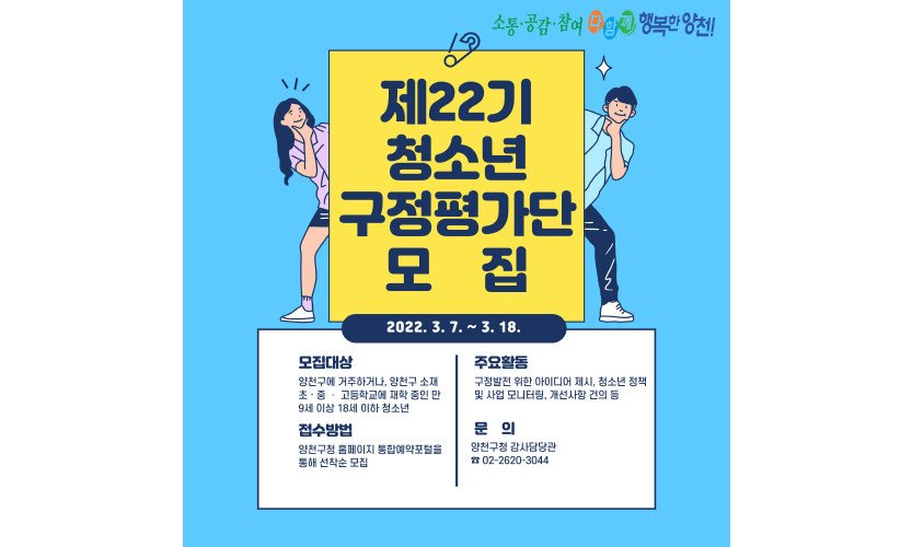 양천구, 제22기 청소년 구정평가단 신규단원 모집