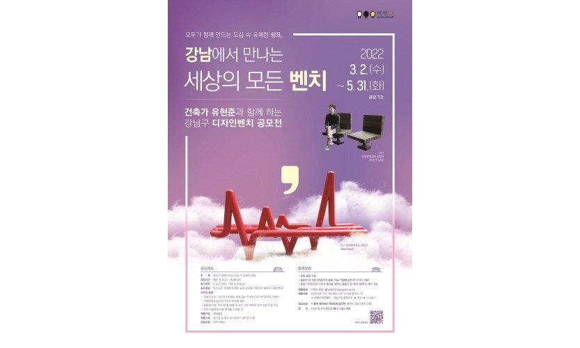 '기분 좋은 변화, 품격 있는 강남'을 실현 중인 강남구(구청장 정순균)가 '강남에서 만나는 세상의 모든 벤치' 디자인 공모사업에 참여할 시민, 기업, 단체를 이달 2일…