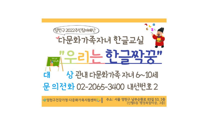 서울 양천구, 다문화가족 자녀 한글교실 '우리는 한글짝꿍' 운영