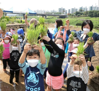 금천구, 안양천 생태텃논 모내기 체험행사 실시
