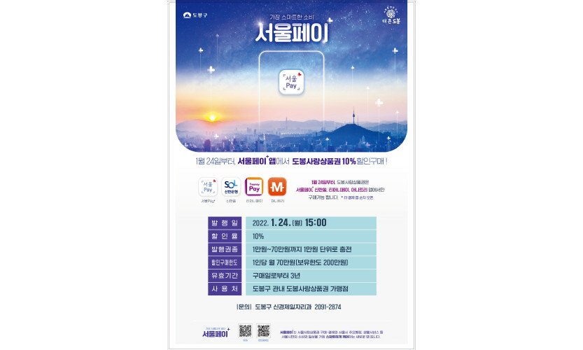 서울 도봉구(구청장 이동진)는 코로나19 장기화로 어려움에 처한 소상공인 지원 및 골목상권 회복을 위해 오는 24일 오후 3시에 '도봉사랑상품권'을 발행한다. 발행 규모…
