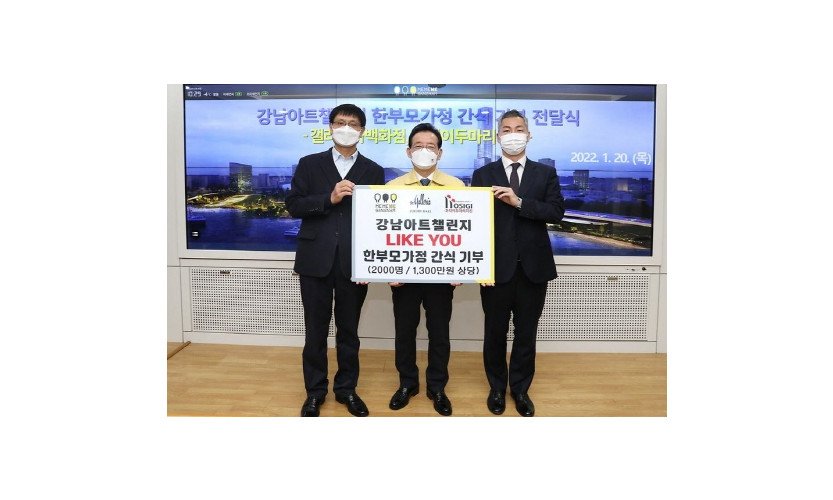 '기분 좋은 변화, 품격 있는 강남'을 실현 중인 서울 강남구(구청장 정순균)가 '강남아트챌린지' 후원사인 갤러리아백화점, 호식이두마리치킨과 함께 지난 20일 한부모 가…