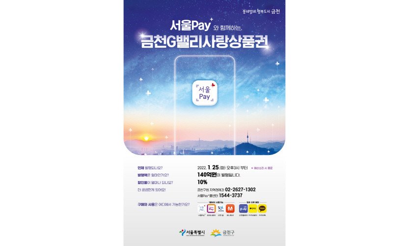 금천구, 금천G밸리사랑상품권 상반기 140억 발행