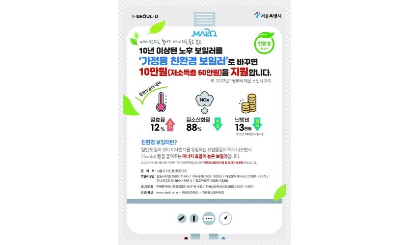 마포구, 친환경 보일러로 교체하면 1대당 10만원 지원